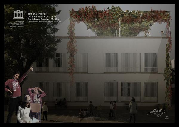 “Emparrados” es una instalación diseñada con la finalidad de mitigar las altas temperaturas sufridas en época estival en los colegios, mediante la disposición de trepadoras por fachadas y cubiertas.